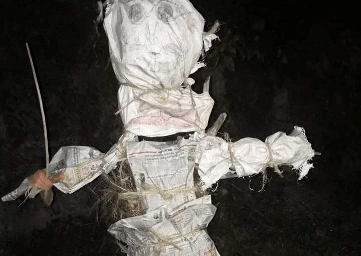 पत्थर पर झंडा फहराते।